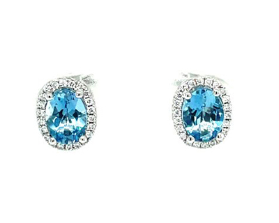 AQUAMARINE & DIAMOND OVAL CLUSTER 18CT EARRINGS