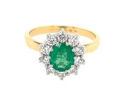 EMERALD & DIAMOND CLUSTER 18CT RING