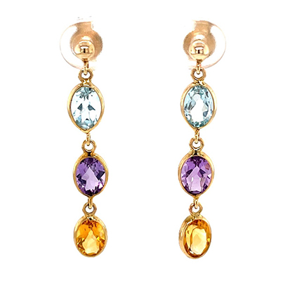 BLUE TOPAZ, AMETHYST & CITRINE EARRINGS